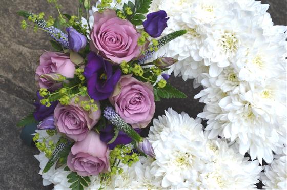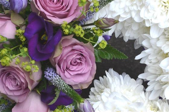 Our massed letter tributes are available with a white chrysanthemum base and sprays in a range of colours.