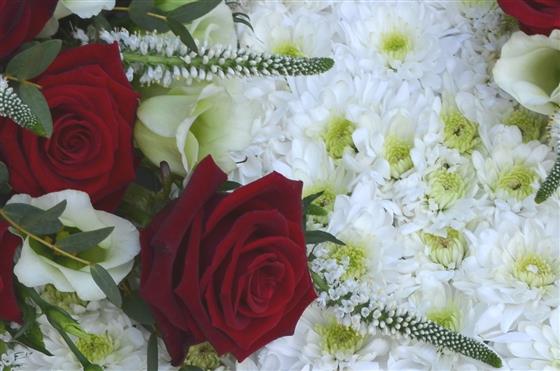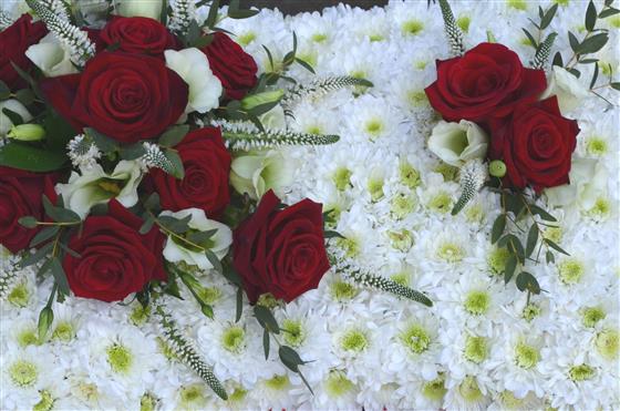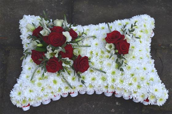 The traditional tribute is created using a white chrysanthemum base and a spray of flowers as pictured or in your choice of colours. Choose between a foliage or ribbon surround.