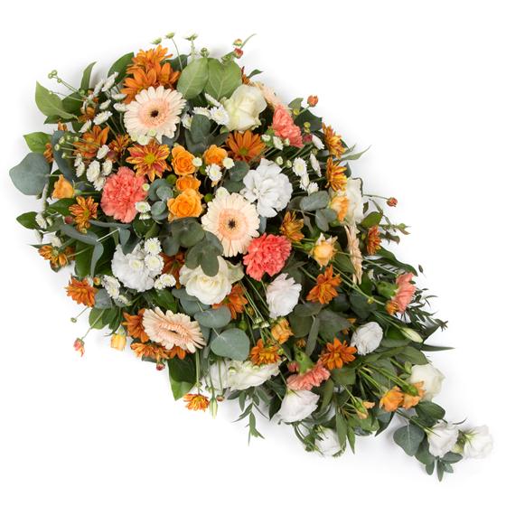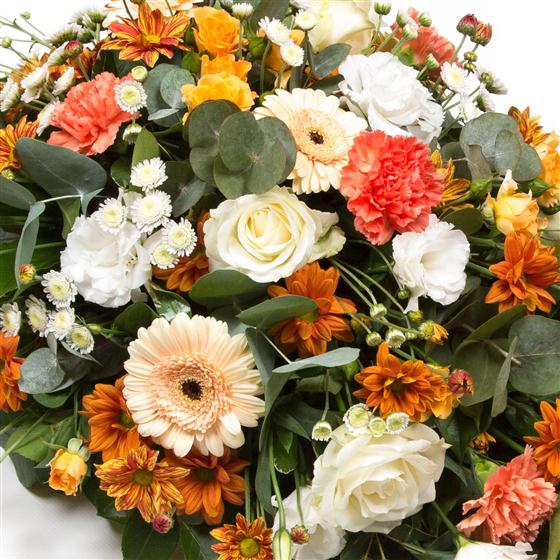A classic single ended mixed spray in peaches, rusts, whites and creams.
